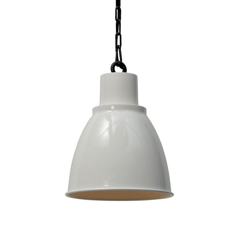 Für die Innen- wie für die Außenseite des Lampenschirms können Sie aus verschiedenen Farbtönen individuell wählen. Die Pendelleuchten verfügen über eine Kettenaufhängung mit Kabelführung. Diese Lampen erhalten Sie zudem optional mit aufgesetzter Industriebox oder beispielsweise mit einem Motorblock als optische Illusion. Aber auch ohne diese Extras harmonieren die Eisenlampen der Industrie-Serie bestens sowohl mit modernen Holzmöbeln als auch mit Klassikern.